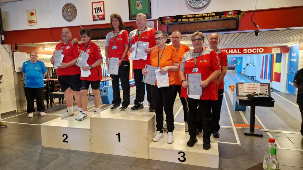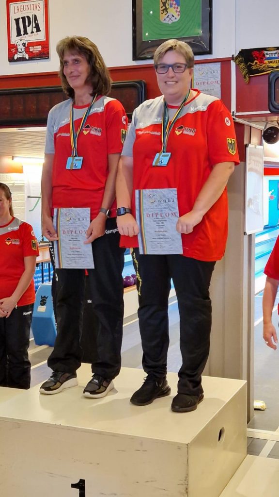 20. Aug. 2024 | von Michel Andrick | Kategorie: Aktuelle NachrichtenBei der diesjährigen Herren und Damen A WM im niederländischen Eygelshoven gingen gleich zwei Wetzlarer an den Start. Zum einen Heike Steinmüller und der Ex-Domstädter und amtierende Deutsche Herren A Meister Alexander Lehnhausen. Zunächst startete Heike mit Holger Hamm und starken 753 Holz im Vorlauf des Team Doppel Mixed und schafften damit den Einzug in die nächste Runde. Durch einen Leistungsabfall scheiterten beide beim Sprung ins Finale und landeten mit 723 Leistungspunkten auf Platz 4. Alex meisterte ebenfalls die Hürde des Tandem Mixed A Vorlaufs mit Partnerin Petra Wörster dank 412 Holz und freute sich auf den Einzug im Kampf um das Podium. Dort hingegen scheiterten beide aber knapp an Bronze und landeten mit 391 Holz auf Rang 4. Des Weiteren startete er mit Partner Alexander Mirus im Vorlauf des Tandem Herren und verpasste mit 442 Holz ebenfalls sehr knapp den Einzug ins Halbfinale. Endgültig platzte der Traum von einer Medaille nach dem er in der Königsdisziplin im Herren A Einzel mit 773 Holz weitere drei Kegel fehlten, um als 4. ins Halbfinale einzuziehen. Besser lief es bei Heike mit Partnerin Petra Fritz im Vorlauf des Team Doppel Damen. Mit 700 Holz gelang der Einzug ins Halbfinale, um anschließend durch eine Leistungssteigerung von 34 Holz das Finale klar zu machen. Dort setzte sie sich gegen das zweite deutsche Paar um Stefanie Hippert und Silke Thissen durch und gewann denkbar knapp mit 725 Holz und 4 Punkten Vorsprung WM-Gold.