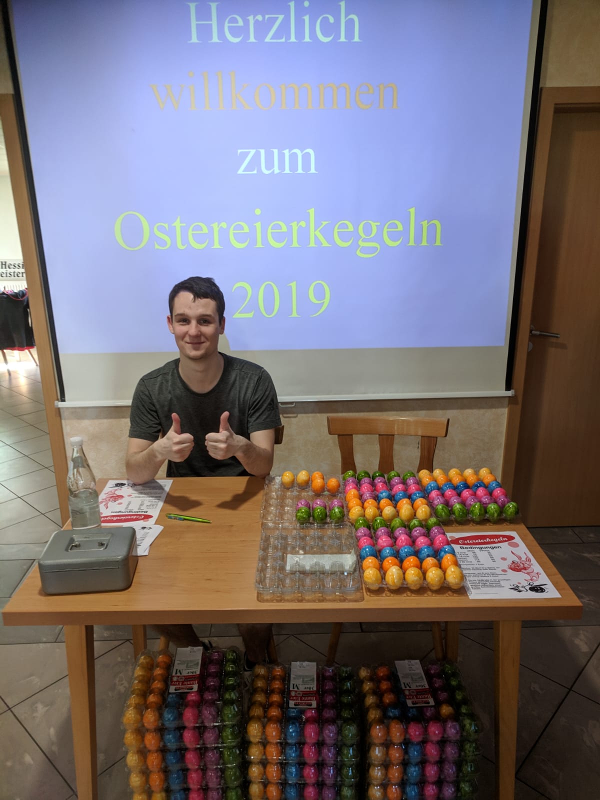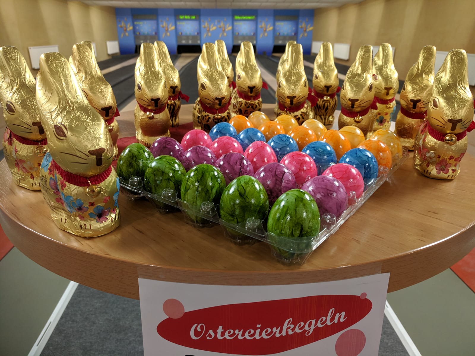 Ein Osterei erhält dabei jeder Teilnehmer und kann diese abhängig von der erzielten Holzzahl bei 20 Wurf steigern. Die Besten in den einzelnen Klassen, die teilweise über 10 Eier pro Durchgang erspielten, wurden noch mit einem Schokohasen belohnt. Hierbei gibt es bei den Jugendlichen drei Altersunterteilungen (U9, U14, U18) und eine Seniorenklasse (Ü60) wobei nach Geschlechtertrennung und Extrawertung für nicht aktive Sportkegler in insgesamt 18 Klassen angetrete