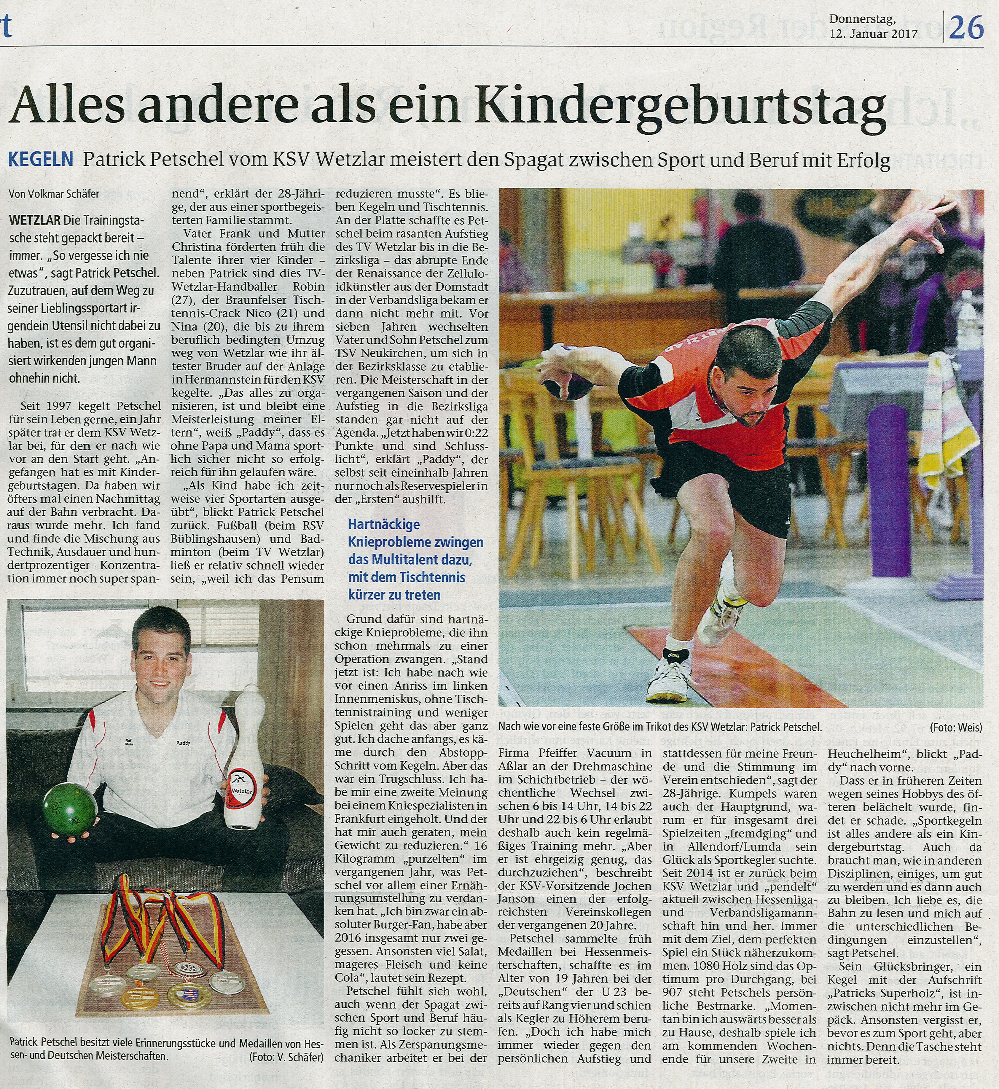 12. Jan. 2017 | von ThoWo | Kategorie: Allgemein, Lesenswertes & WichtigesWNZ-Sportredakteur Volkmar Schäfer hat ein Interview mit Patrick Petschel und eine interessante Reportage über ihn verfasst.