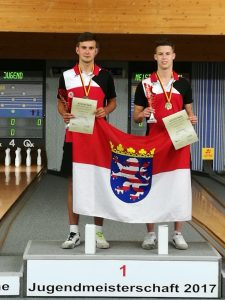 Im ersten Block stark vorlegend konnte Eric Hardt mit Justin Ehling, Gastspieler aus Herfa, die Konkurrenz schocken. An ihre 718 kamen Marjan Leis / Luca Wolter (699, Trier) und Niklas Wörster / Robin Graes (688, Klafeld-Geisweid) nicht heran. Das zweite Wetzlarer Duo mit Benjamin Scheidt und Niklas Theiß (574) konnte da nicht mithalten und wurden Neunte, knapp hinter den Hessenmeistern Göbler/Anders (585) vom KV Lahntal.