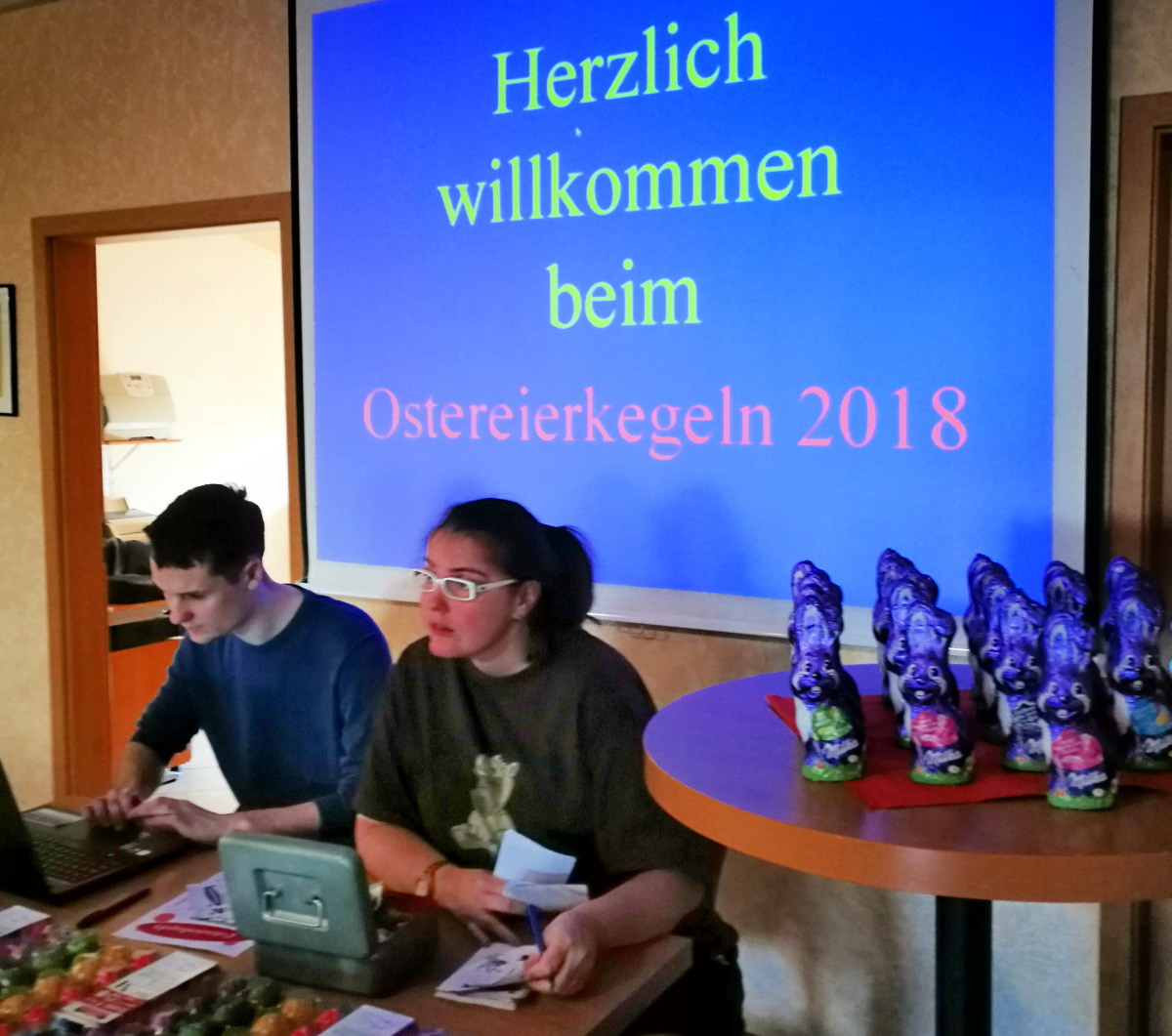 Ein Osterei erhält dabei jeder Teilnehmer und kann diese abhängig von der erzielten Holzzahl bei 20 Wurf steigern. Die Besten in den einzelnen Klassen, die teilweise über 10 Eier pro Durchgang erspielten, wurden noch mit einem Schokohasen belohnt. Hierbei gibt es bei den Jugendlichen drei Altersunterteilungen (U9, U14, U18) und eine Seniorenklasse (Ü60) wobei nach Geschlechtertrennung und Extrawertung für nicht aktive Sportkegler in insgesamt 18 Klassen angetreten wird.