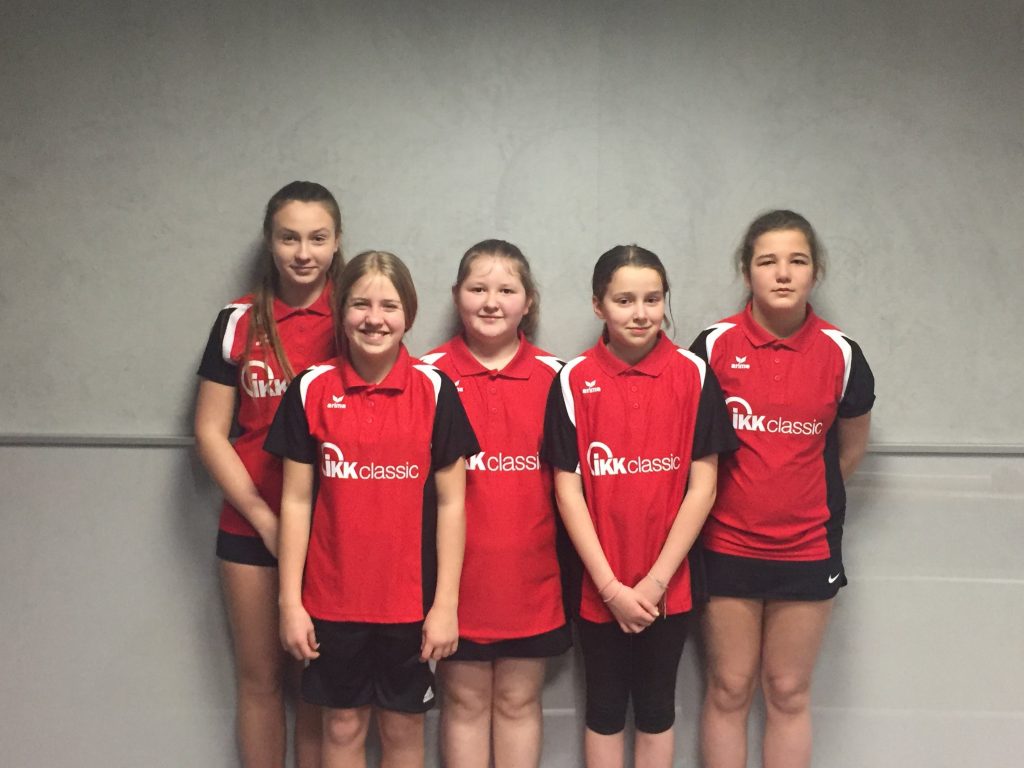 Siegerehrung: Die KSV-Mädels Alexa Wohlert, Lena Marie Höge, Basitenne Gerlach, Evelyn Weigandt, Lea Steinmüller und die Sieger vom PSV Fulda mit Finja Hohmann, Luna-Marie Pfeiffer und Anna-Lene Rütten (es fehlt Joelle Ehling)