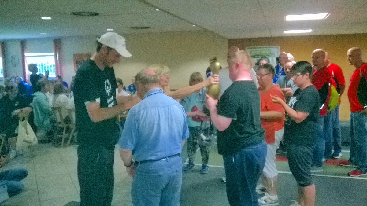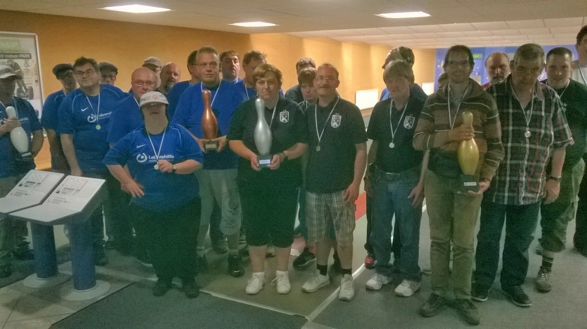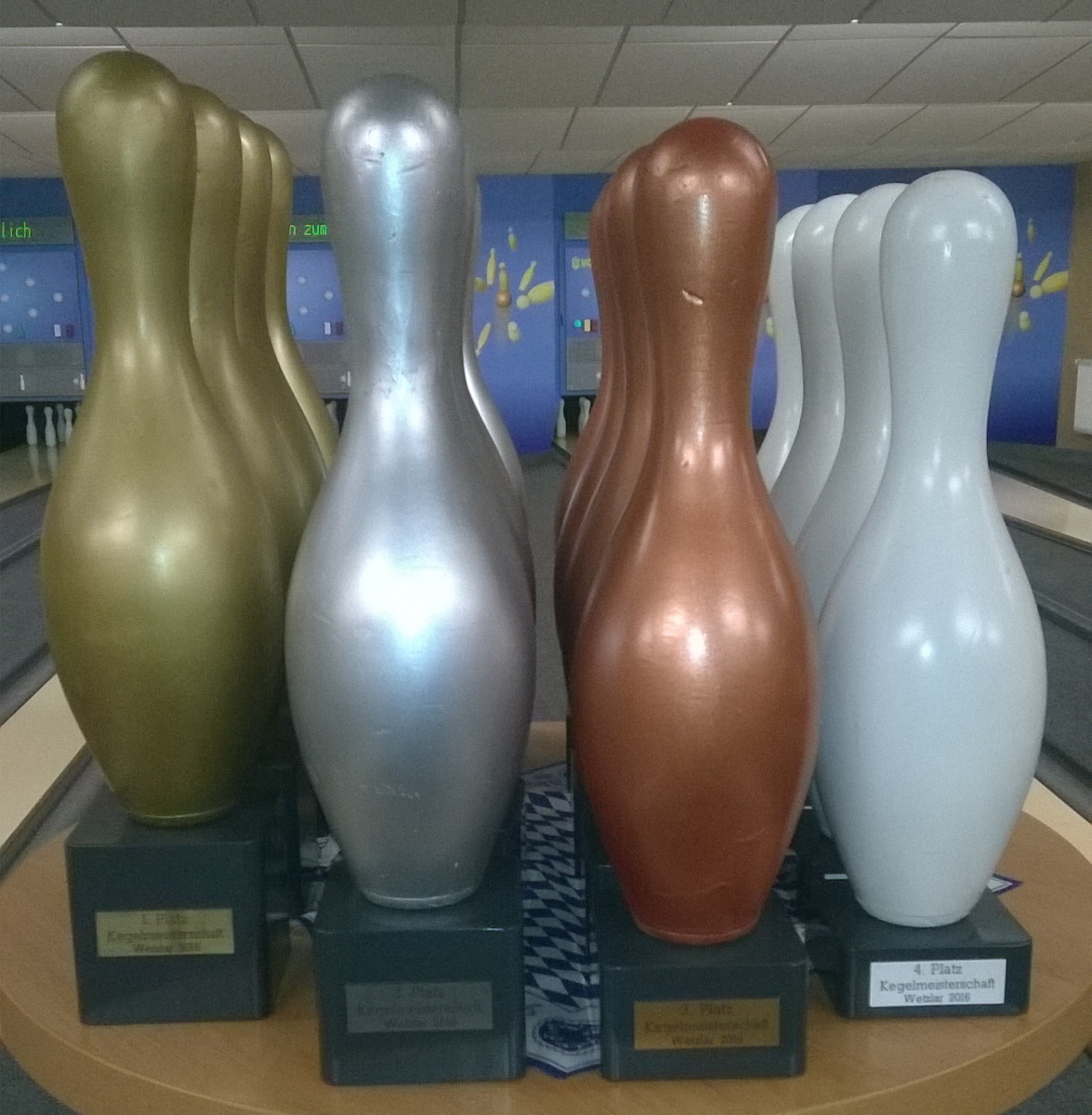 Jeder Mannschaft wurde ein Pokal überreicht und jeder Spieler/in erhielt eine Medaille und Urkunde. Die Kegelpokale wurden in Handarbeit in den Werkstätten für behinderte Menschen der Lebenshilfe Wetzlar-Weilburg hergestellt.