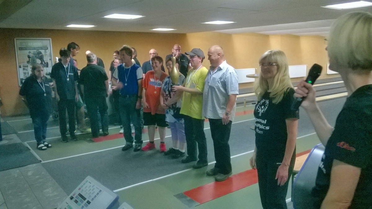 Unsere gehandicapten Sportler hatten viel Spaß. Jeder war Sieger, alle erhielten Medaillen und jede Mannschaft einen Pokal.
