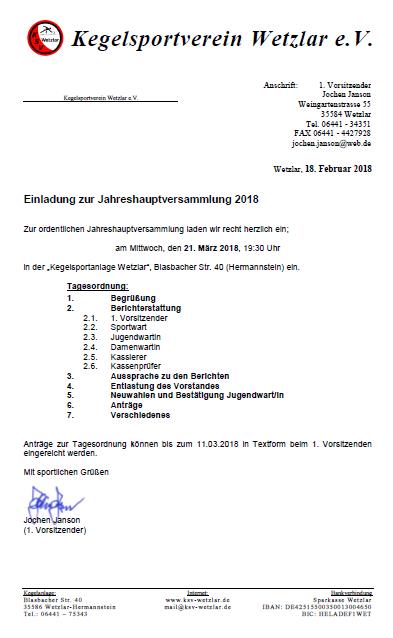 Zur ordentlichen Jahreshauptversammlung laden wir recht herzlich ein;