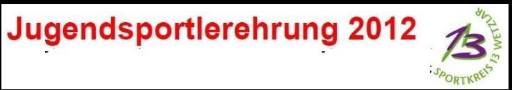 29. März 2012 | von ThoWo | Kategorie: Jugend, Lesenswertes & WichtigesViele Jahre haben wir eine Ehrungsmöglichkeit für Jugendliche in der Stadt Wetzlar oder im Sportkreis Wetzlar gefordert, nun führt die Sportkreisjugend des Sportkreises 13 (Wetzlar) zum zweiten Mal eine Jugendsportlerehrung durch!