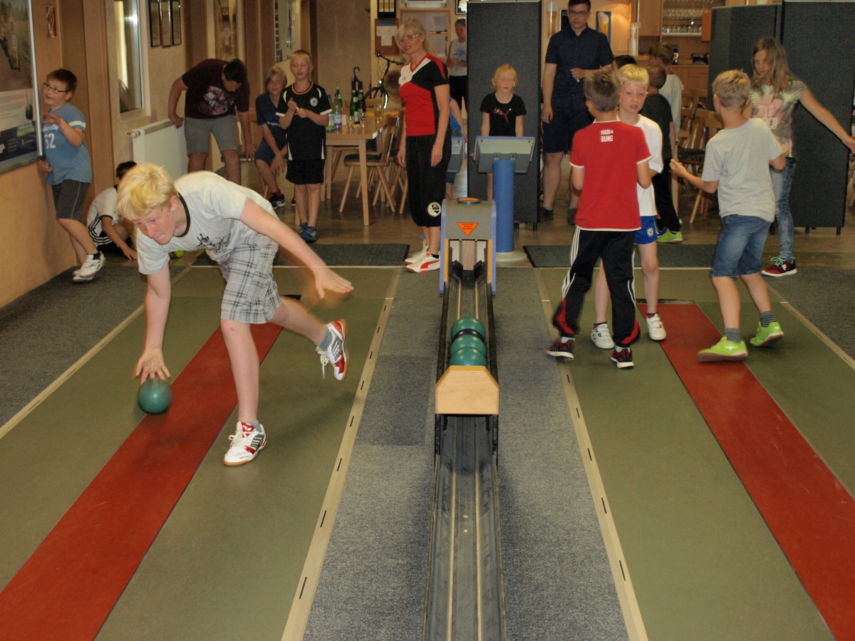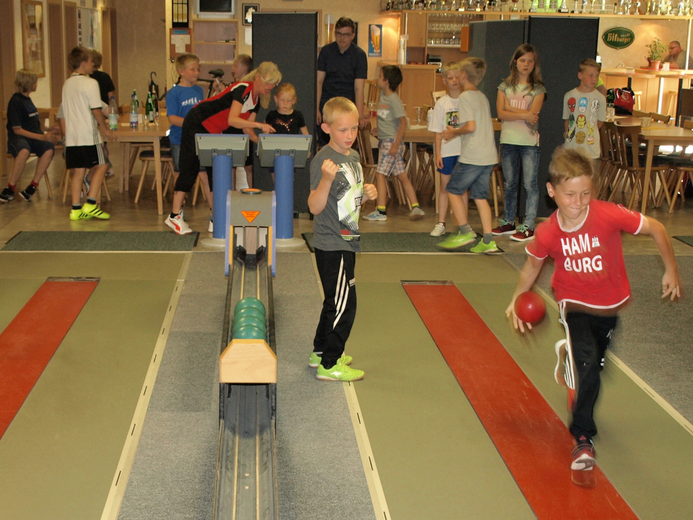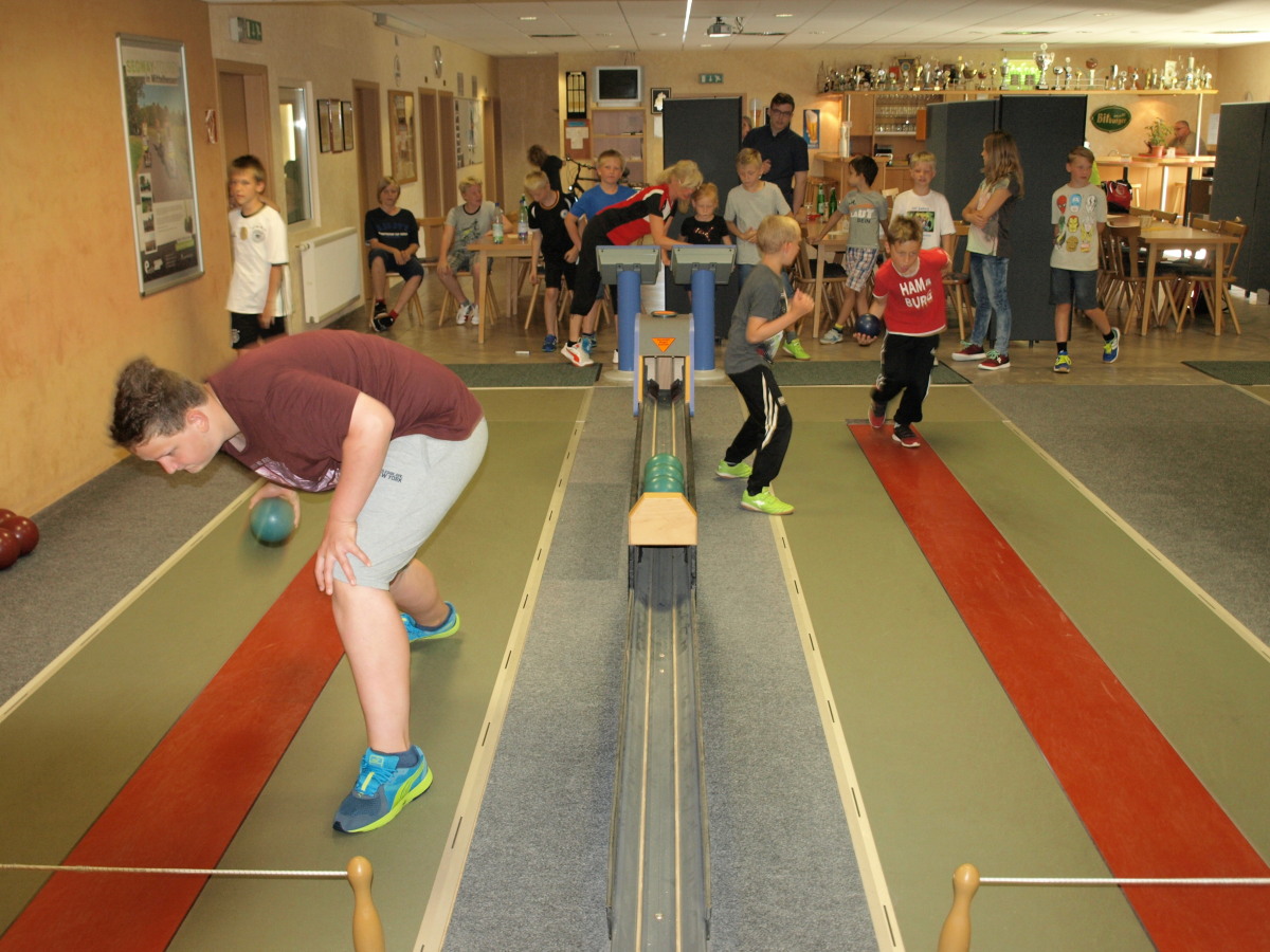 Sommerferienprogramm Stadt WetzlarWie immer haben wir uns auch in 2016 am Sommerferienprogramm der Stadt Wetzlar (früher Ferienpassaktion) beteiligt und den Schüler/innen wieder die Gelegenheit gegeben unsere „umwerfende“ Sportart kennenzulernen. Nach einer kurzen historischen und theoretischen Einleitung zum Sportkegeln durch unsere Jugendwartin Bettina Janson wurde bei Kegelspielen wie Hausnummern, Pizza, Mensch ärgere Dich nicht und dem Tannenbaum der Bewegungsablauf spielerisch geübt. Am Ende hatten dank unseren weiteren Betreuern Pricilla Wodarz, Niklas Theiß und Philipp Wagner nicht nur alle Kinder und Jugendlichen drei Stunden voller Spaß, sondern auch bereits deutlich erkennbare Steigerungen beim spielerischen Wettkampf.