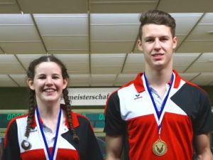 Zwei hessische Paare waren am Start und beide holten Edelmetall. Die Fuldaer Finja Hohmann / Tim Happ sicherten sich Gold und Joelle Ehling / Adrian Bartholomäus holten für Bosserode Bronze. Dazwischen schoben sich Laura Panneck / Marlon Cord (KV Westfalen).