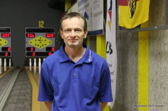Eine starke Vorstellung lieferte auch Hessenmeister Jörg Schnell (Wettenberg) im Einzel der Herren-A (50-59 Jahre) ab. Im Vorlauf sicherten ihm (818) zwei Kränze kurz vor Schluss den Einzug in die Runde der besten Acht. Dabei ließ er unter anderem mit Hilbert Wagner (Nordsaar) und Martin Hoffmann (Riol) zwei routinierte Bundesligaakteure hinter sich, die zum engsten Favoritenkreis gezählt wurden. Im Zwischenlauf konnte er (825) sich steigern, musste aber lange zittern, bis der überraschende Einzug ins Vierer-Finale feststand. Dort entwickelte sich ein spannender Wettkampf in dem die Führungen ständig wechselten. Zur Halbzeit lag Schnell gar mit 10 bzw. 18 Holz in Führung und vor der letzten Abräumgasse betrug der Rückstand auf den Führenden ein Holz und alle vier Darsteller trennten acht Holz. Dann setzten sich die Routiniers Bodo Schwanke (Gütersloh, 854) und Rainer Stoffels (Münstermaifeld, 853) ab. Schnell (836) konnte seinen Vorsprung auf den zweiten Hessen im Finale Michael E. Schmidt (Mittelhessen, 829) halten und sich Bronze sichern. Ein Wermutstropfen fällt allerdings auf den Erfolg, denn neben seinen drei Finalmitstreitern wurde Vorjahrsmeister Horst Mickisch (Riol) und nicht er für die internationalen Meisterschaften in Trier nominiert.