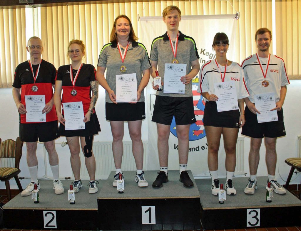 Im Paarkampf Mixed gingen im Vorlauf wiederum zwei Paar aus der Domstadt an den Start. Rainer Scheidt, der für den verhinderten Michel Andrick an der Seite von Jasmin Wendt einsprang zeigte eine überragende Leistung und gewann den Vorlauf deutlich mit 644 Holz. Weit dahinter reihten sich Evelyn Weigandt und Tim Steinmüller mit 503 auf Rang 11 ein. Im Endlauf steigerten sich Wendt und Scheidt zwar nochmal um zwei Leistungspunkte und schraubten ihr Ergebnis auf 646 Holz, landeten damit allerdings auf Rang zwei und verpassten damit den Titel und den Startplatz zur Deutschen. Gold ging an Ilona Mann und Yannik Röhm vom KSC Heuchelheim mit 657 Holz. Bronze erspielten sich Mandy Schneider und Christian Heigele von der KSG Mittelhessen. Nun gilt es für die drei qualifizierten Wetzlarer Akteure weiterhin fleißig zu trainieren, um vom 08.-13.6.2024 bei den deutschen Meisterschaften in Langenfeld das Bestmöglich rauszuholen.