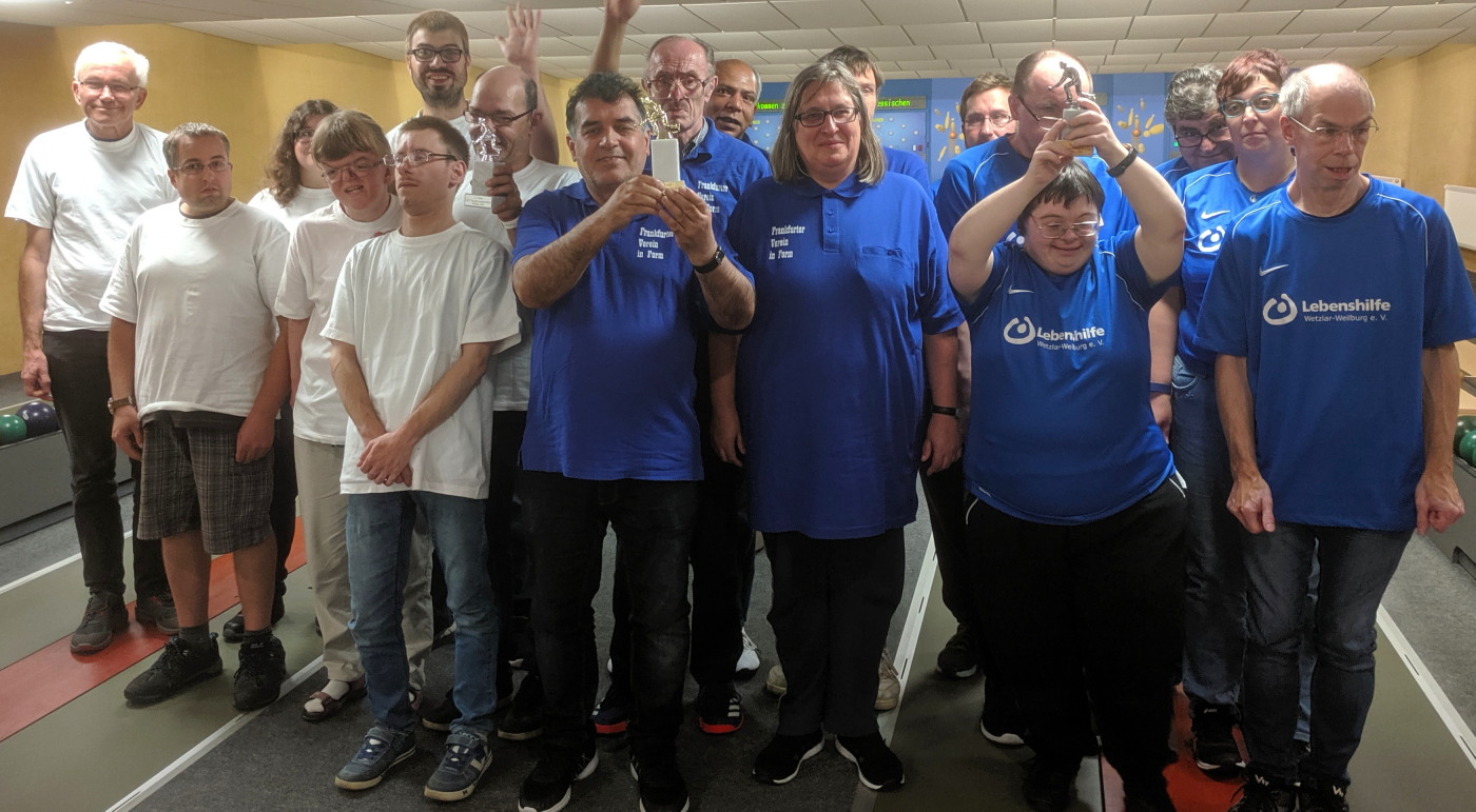 Die „Special Olympics Kegelmeisterschaften 2019 der Landesarbeitsgemeinschaft-Werkstätten für behinderte Menschen in Hessen“ fanden in diesem Jahr bereits zum vierten Mal in unserer Kegelsportanlage statt. Zu der von der Lebenshilfe Wetzlar-Weilburg und dem KSV Wetzlar am 13. August 2019 gemeinsam organisierten Veranstaltung fanden sich etwa 100 Teilnehmer, Betreuer und Besucher ein, die für die Teilnahme teilweise weite Anfahrten aus verschiedenen Einrichtungen in Hessen auf sich genommen hatten. Mitglieder verschiedener Werkstätten oder Wohneinrichtungen für Behinderte waren mit von der Partie und hatten großen Spaß. „Eure Anlage ist für dieses Event einfach Spitze, unsere Sportler mit verschiedensten Handicaps fühlen sich hier immer sehr wohl!“ freute sich Beate Egli von der Lebenshilfe Wetzlar-Weilburg. In dem über drei Vor- und zwei Finalrunden ausgetragenen Wettbewerb zeigten die jeweils sechs Kegler und Keglerinnen der teilnehmenden dreizehn Mannschaften viel Ehrgeiz. Im Rahmen der Siegerehrung erhielten alle Mannschaften einen Pokal und es durfte sich jeder Teilnehmer*in über eine Urkunde freuen. Am Ende des Tages waren sich auch die zahlreichen Helfer einig, dass es eine tolle Werbung für den Behinderten- sowie den Kegelsport und eine insgesamt wieder sehr gelungene Veranstaltung war.