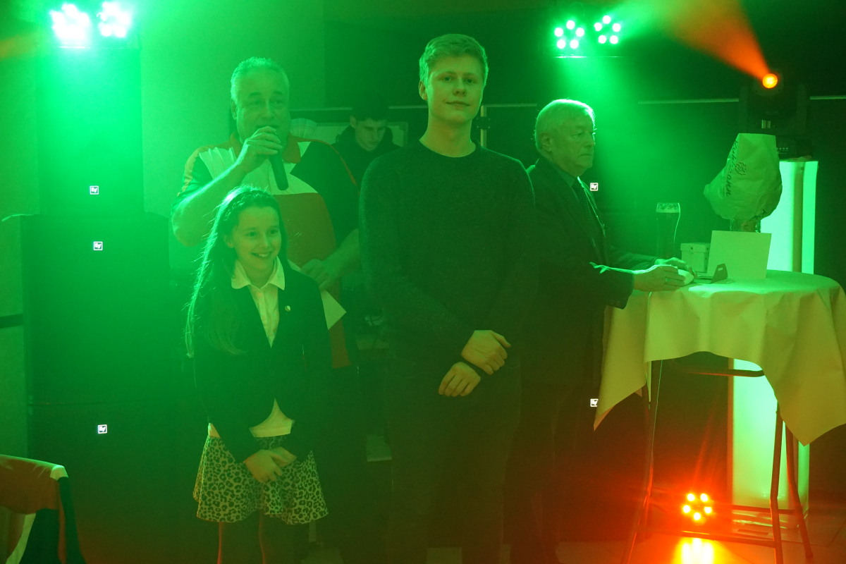 Der Vorsitzenden Jochen Janson zeichnete die langjährigen Vereinsmitglieder aus. Da hier sein ältester Sohn Jannis, der mit Geburt angemeldet wurde, und seine Eltern für 25jährige Mitgliedschaft geehrt wurden, standen drei Generationen auf der Bühne. Zehn Jahre im Verein sind Alexa Wohlert, die ebenfalls seit ihrer Geburt dabei ist und Niklas Theiß.